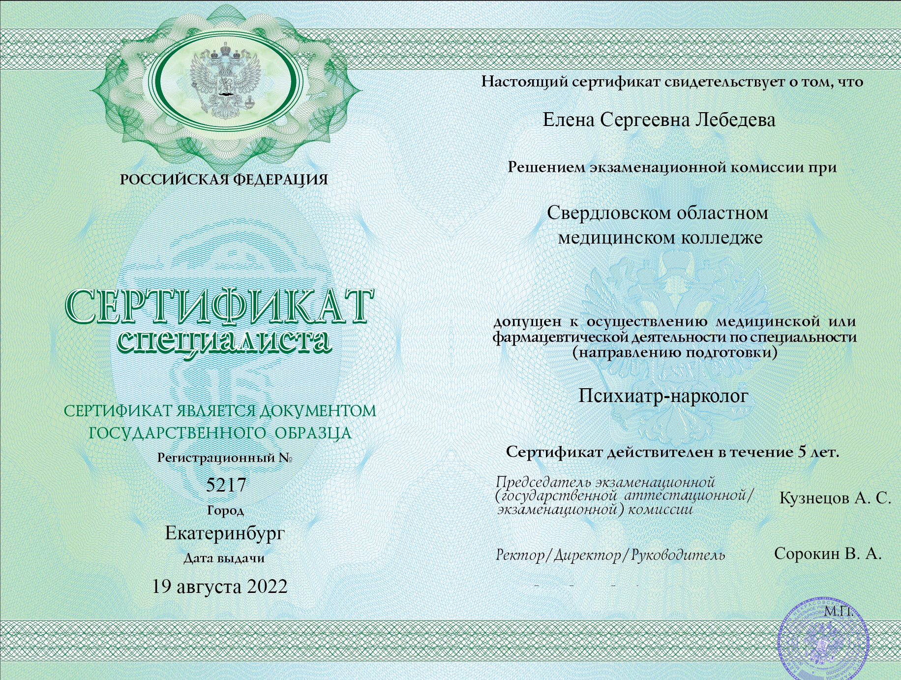Елена Сергеевна Лебедева врач нарколог клиники доктора Стукаловой в Усть-Лабинске